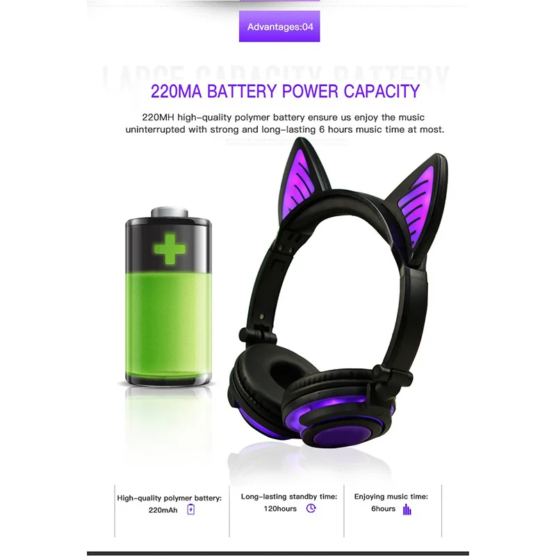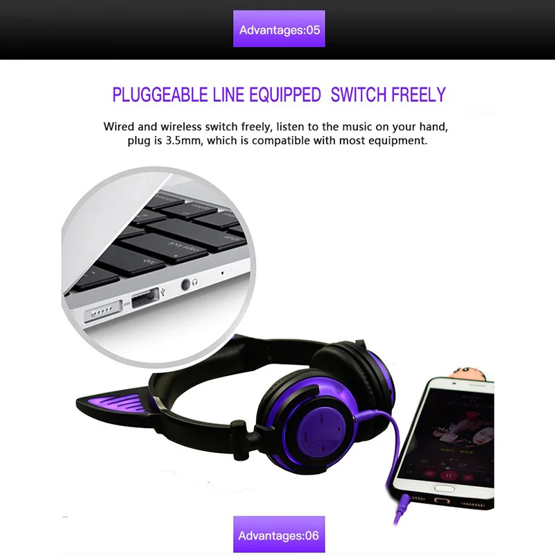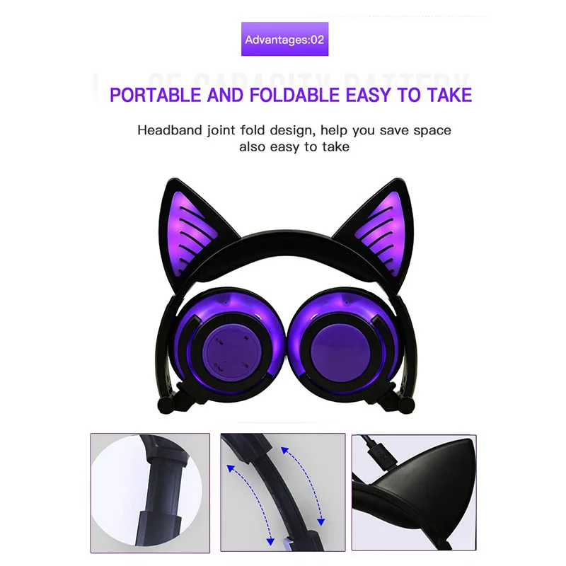 Ideal Bluetooth Stereo Cute Cat Ear Headphones Flashing Glowing cat ear headphones Gaming Headset Earphon