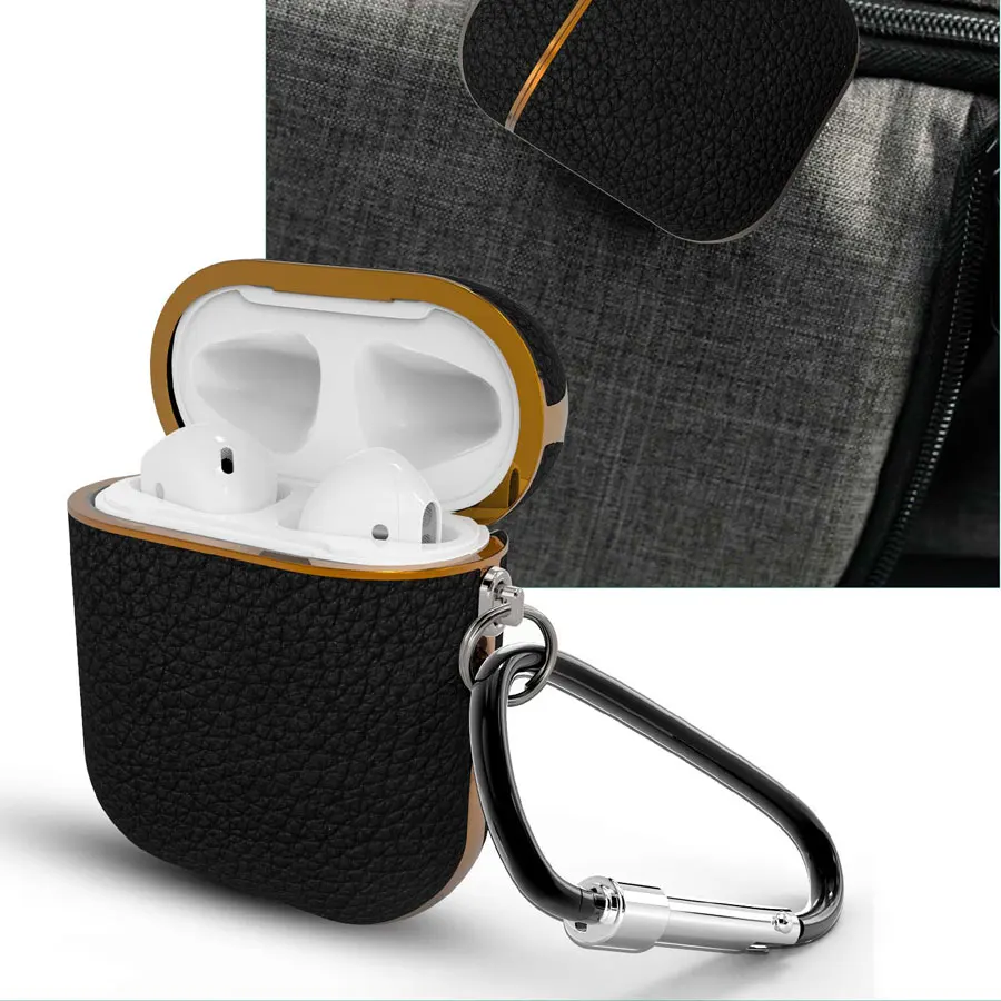 Most effective Genuine Leather Case For Airpods 2 Dust Cover Hard With Hook Earphone Wireless Charging Protective