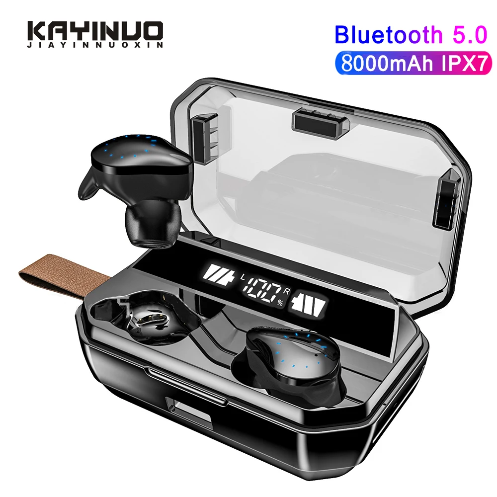 TWS bluetooth earphone 5.0 stereo HiFi 8000mAh IPX7 waterproof mini wireless headphone bluetooth 5.0 earbuds with mic in-ear,KAYINUO 7000mAh 9D Stereo TWS bluetooth earphone waterproof noise reduction bluetooth headest with microphone phone charger LED, KAYINUO 7000mAh 9D Stereo TWS bluetooth earphone waterproof noise reduction bluetooth headest with microphone phone charger LED