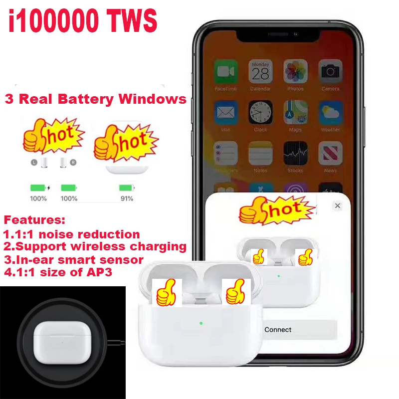 Greatest New i100000 TWS 1:1 Super Copy Air Pro3 Wireless Bluetooth Earphone pk w1 наушники chip i500 i10000