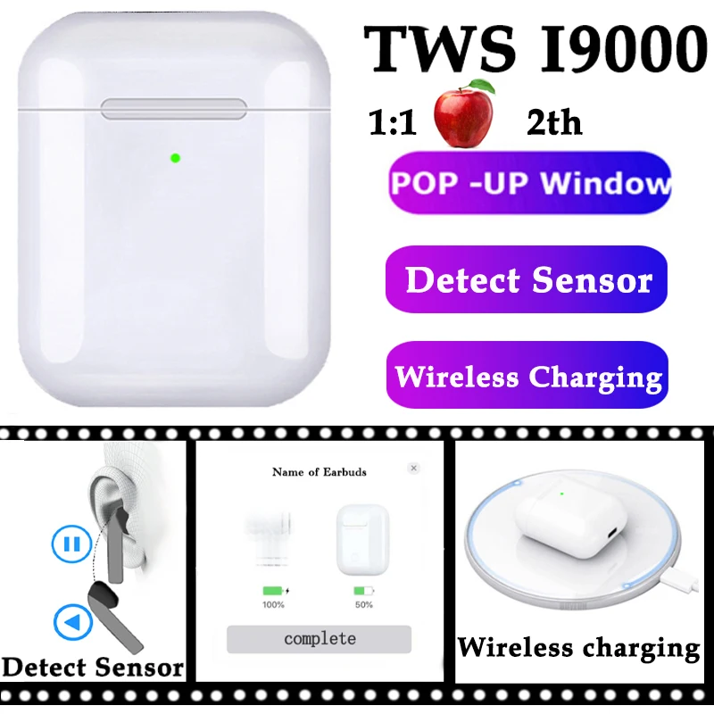 Promo i19000 TWS Black & White Bluetooth Earphone Wireless Headsets Earbuds Headphones Earpiece For Origi