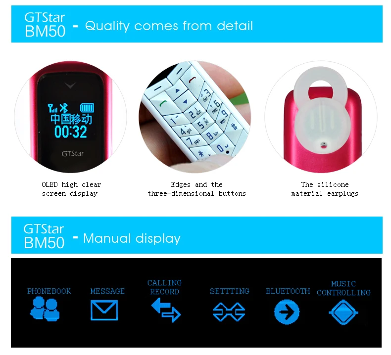 Greatest MOSTHINK GTstar BM50 Mini Mobile Phone 0.66" Screen Small Size Cellphone 300mAh Bluetooth Earphone