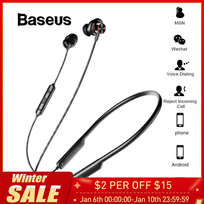 discounted Baseus S12 Bluetooth Earphone Bluetooth 5.0 Neckhand Handsfree Earphone Waterproof Sport Wireless H