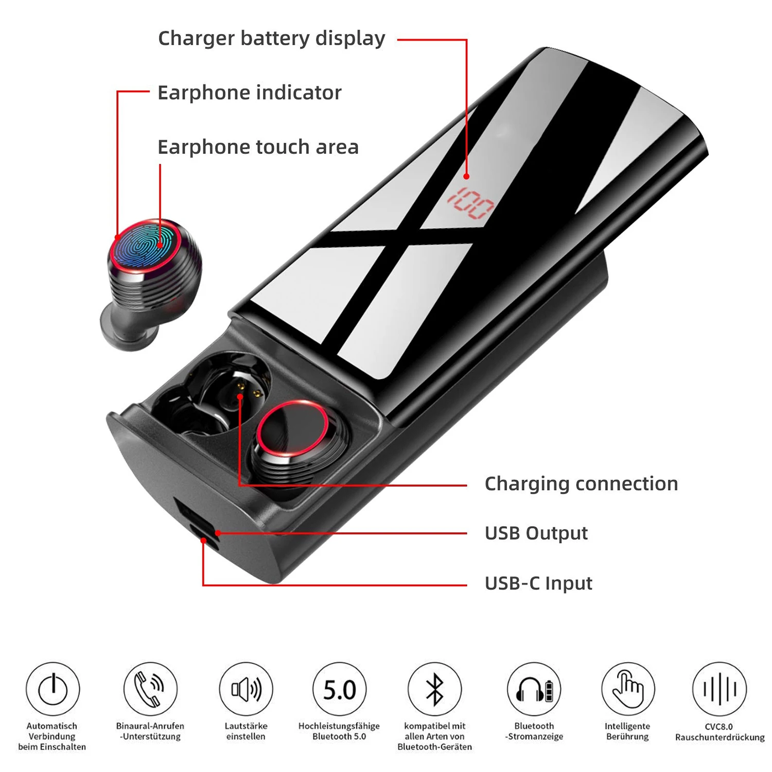 Best TWS True 5.0 Bluetooth Earphones Sport In-ear Wireless Earbuds IPX6 Waterproof Headphones For Phone